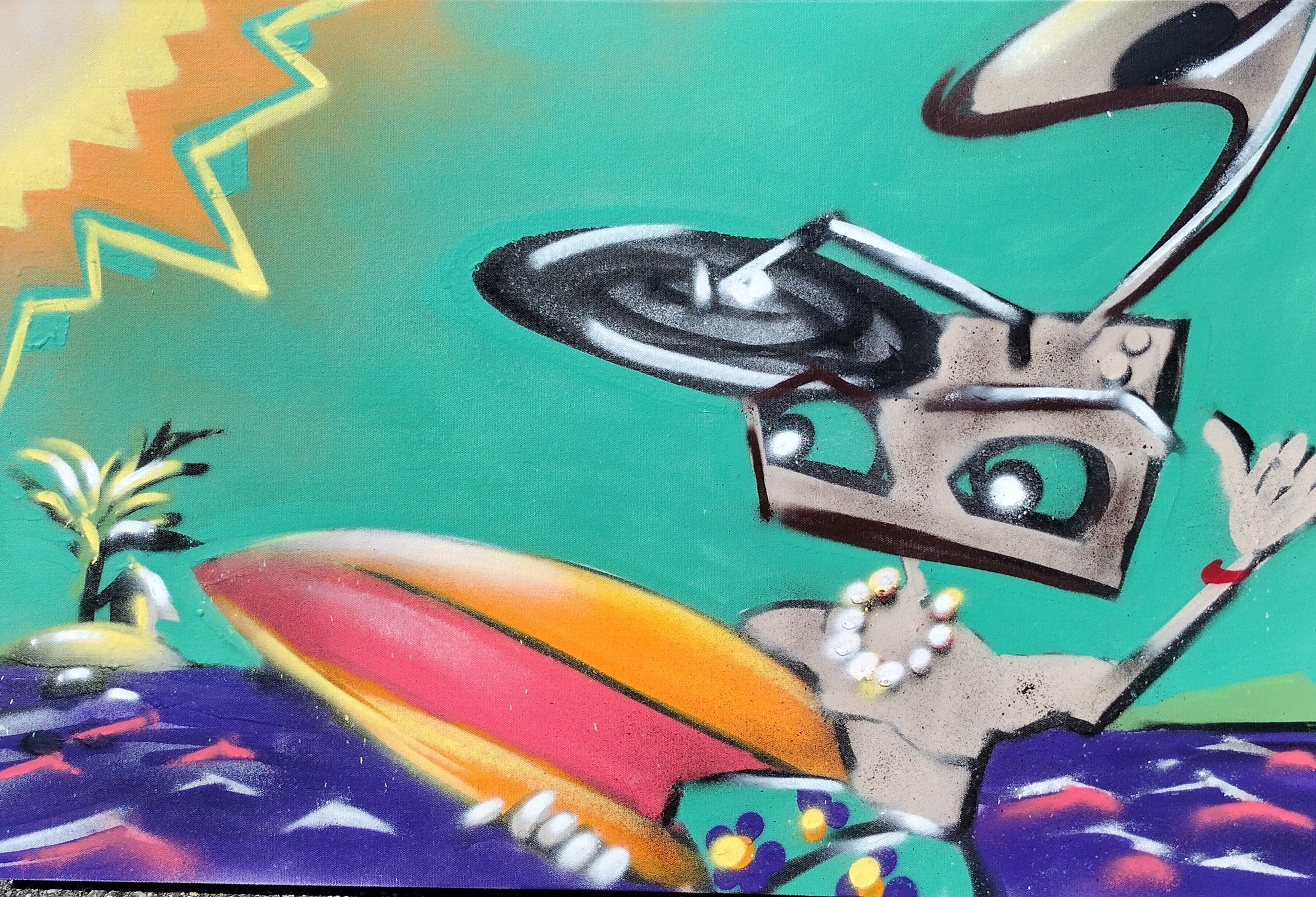 I got down in the park on canvas and painted a surfer music.man.....had a blast and made some great connects.